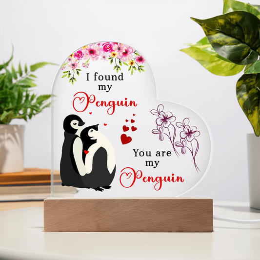 I found my penguin - You are my penguin - Best Gift For Valentine's Day - Acrylic Heart Plaque